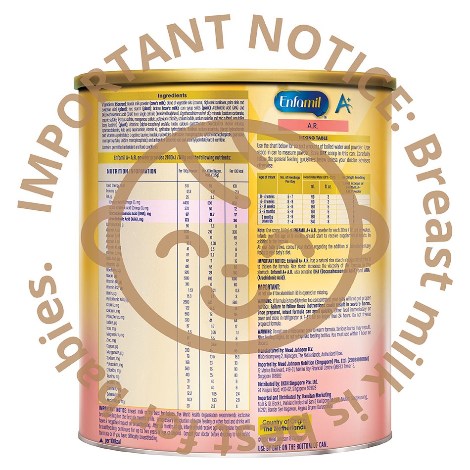 • With over 100 years experience in paediatric nutrition, Mead Johnson Nutrition has designed Enfamil A+ A.R.
