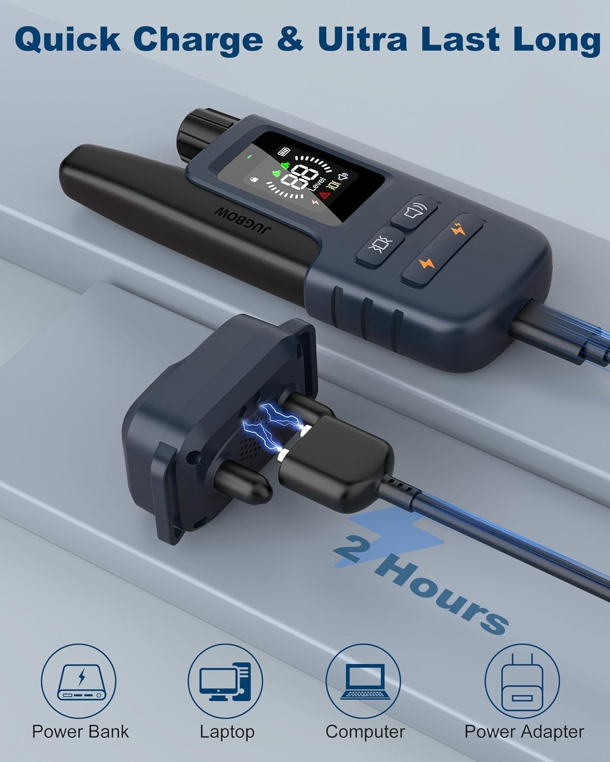 • 【Incredible Battery Life & Quick Charging】 Charging via USB, 2-in-1 fast charging only 2 hours to be fully charged. This dog training collar with remote provides battery life that lasts for a long time, the e collar can last up to 35 days of standby time and the remote 45 days!